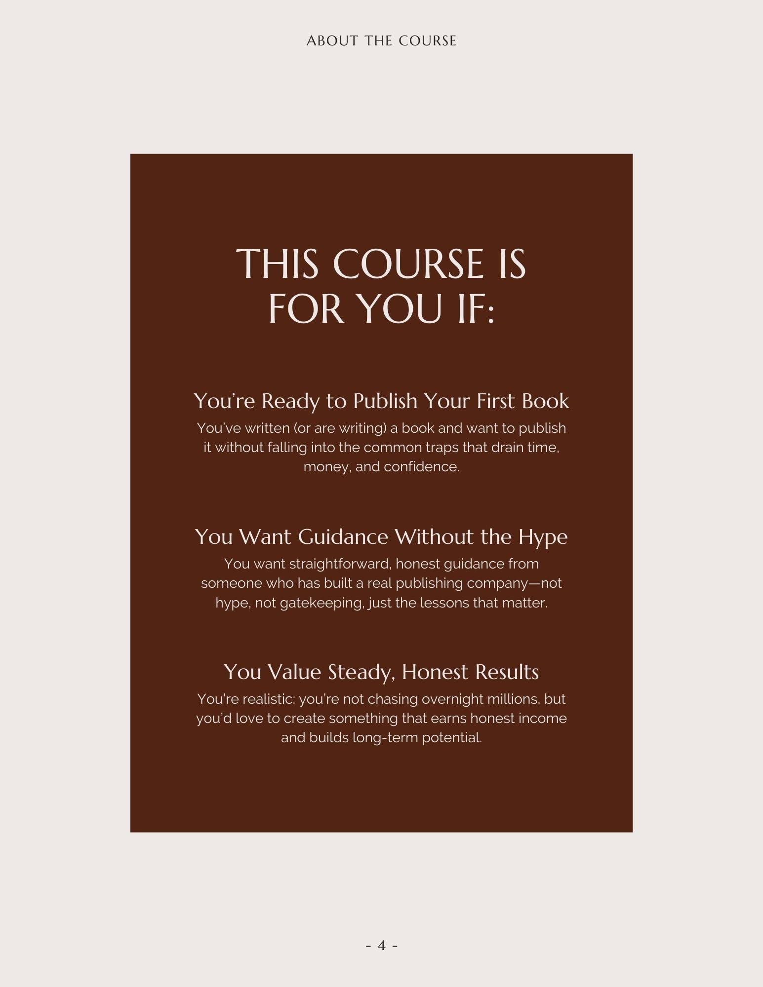 This is Self-Publishing 101. It will walk you through the foundation: the basics you need to publish wisely, avoid costly mistakes, and feel confident about publishing your book.